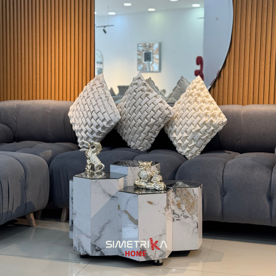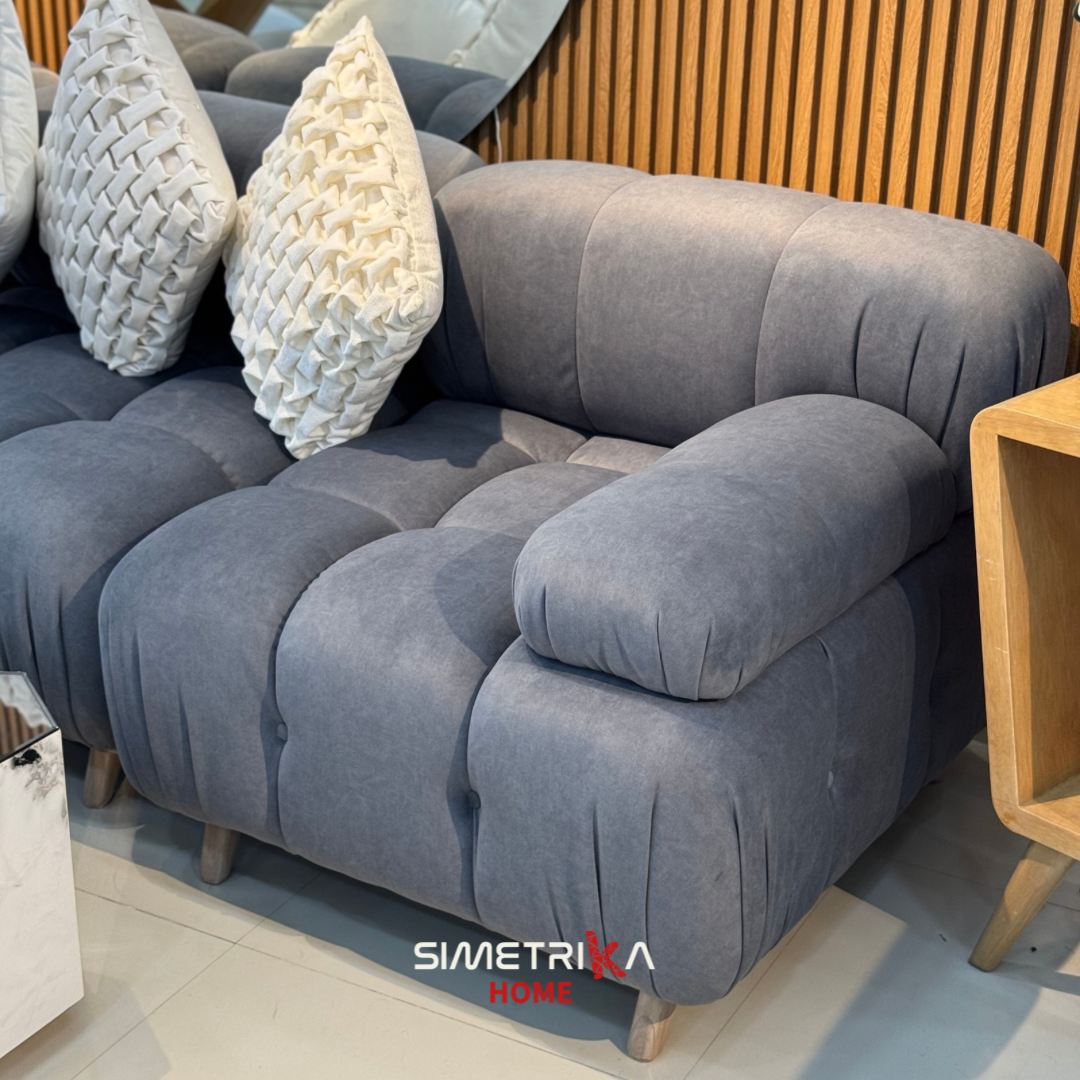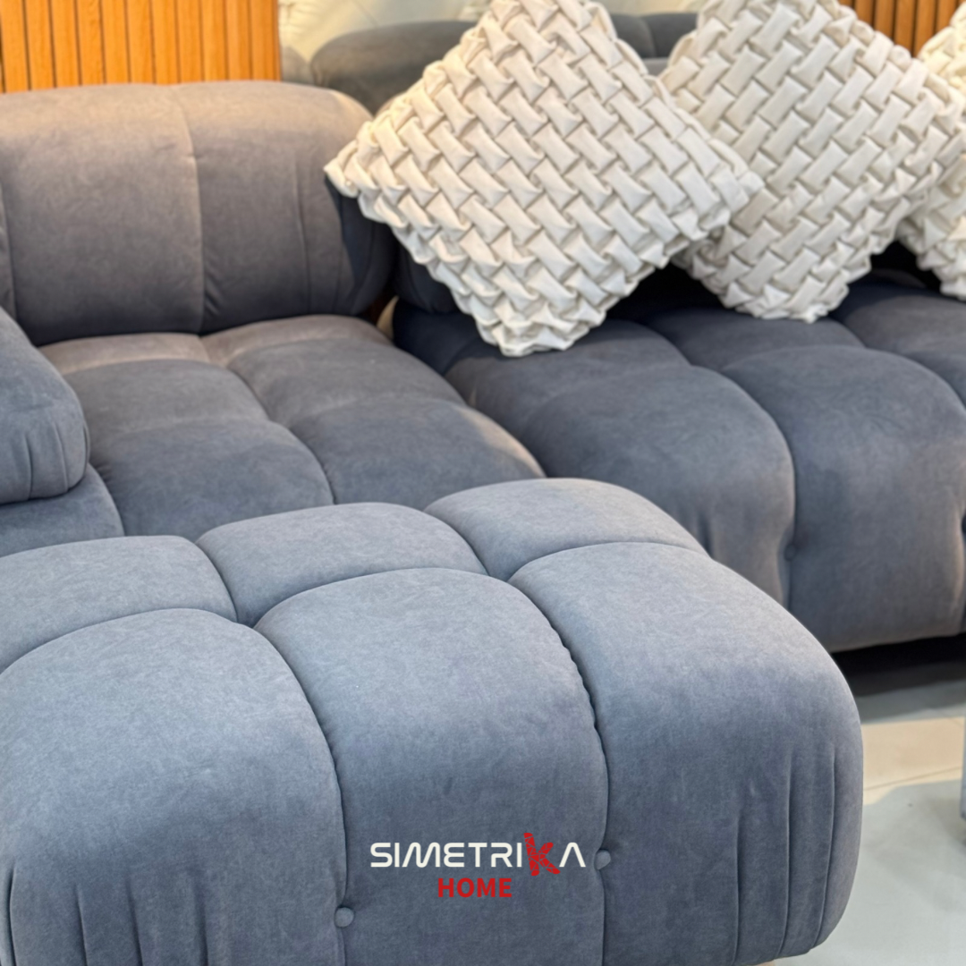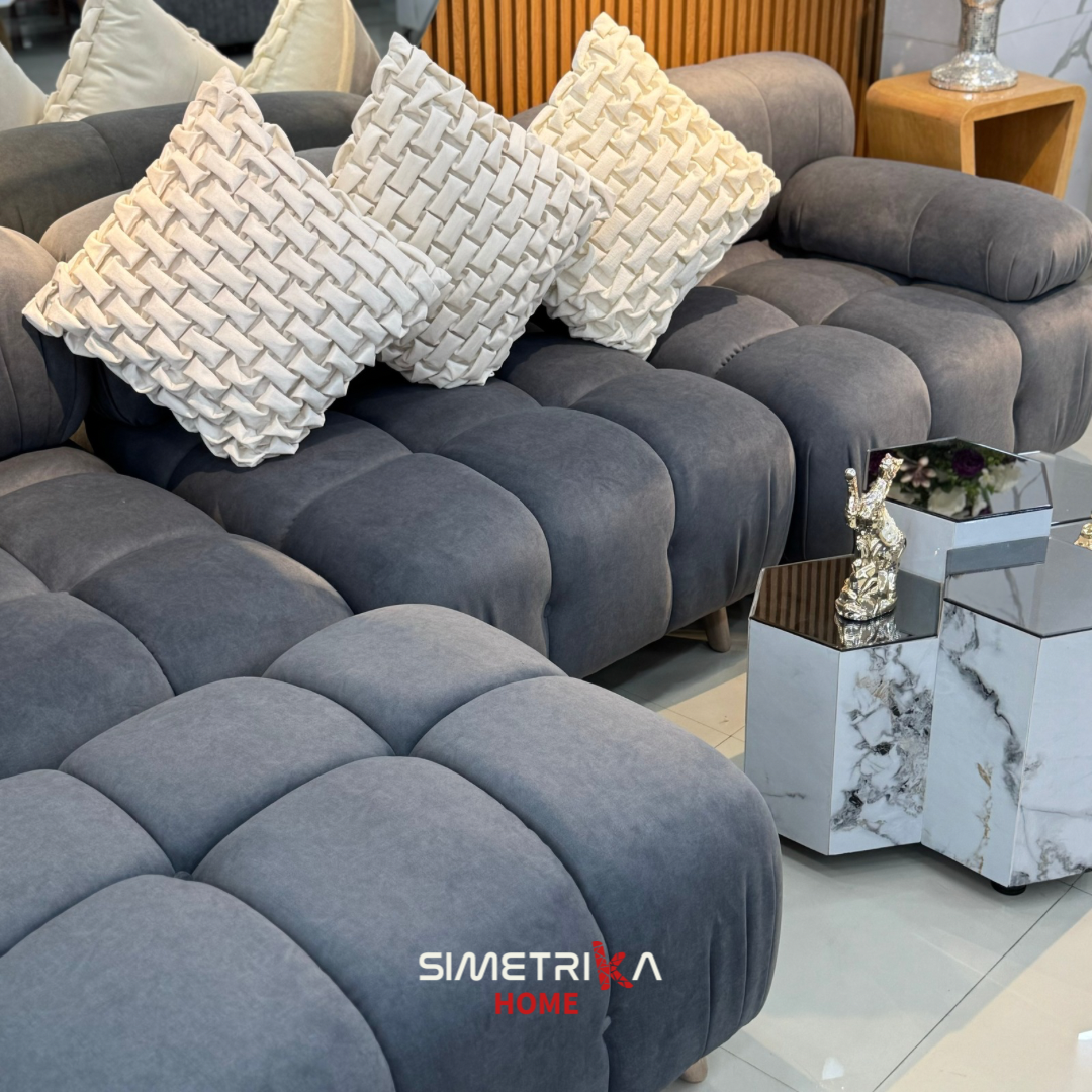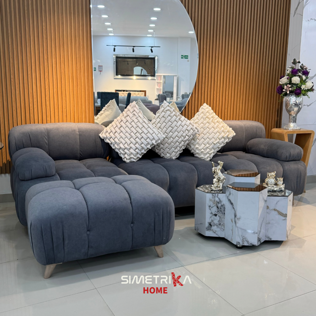 Sala en L de 4 puestos fabricada en telas con antifluidos y amigable con las mascotas. Incluye mesa de centro en madera y tres cojines decorativos lisos que puede escoger en el almacén.